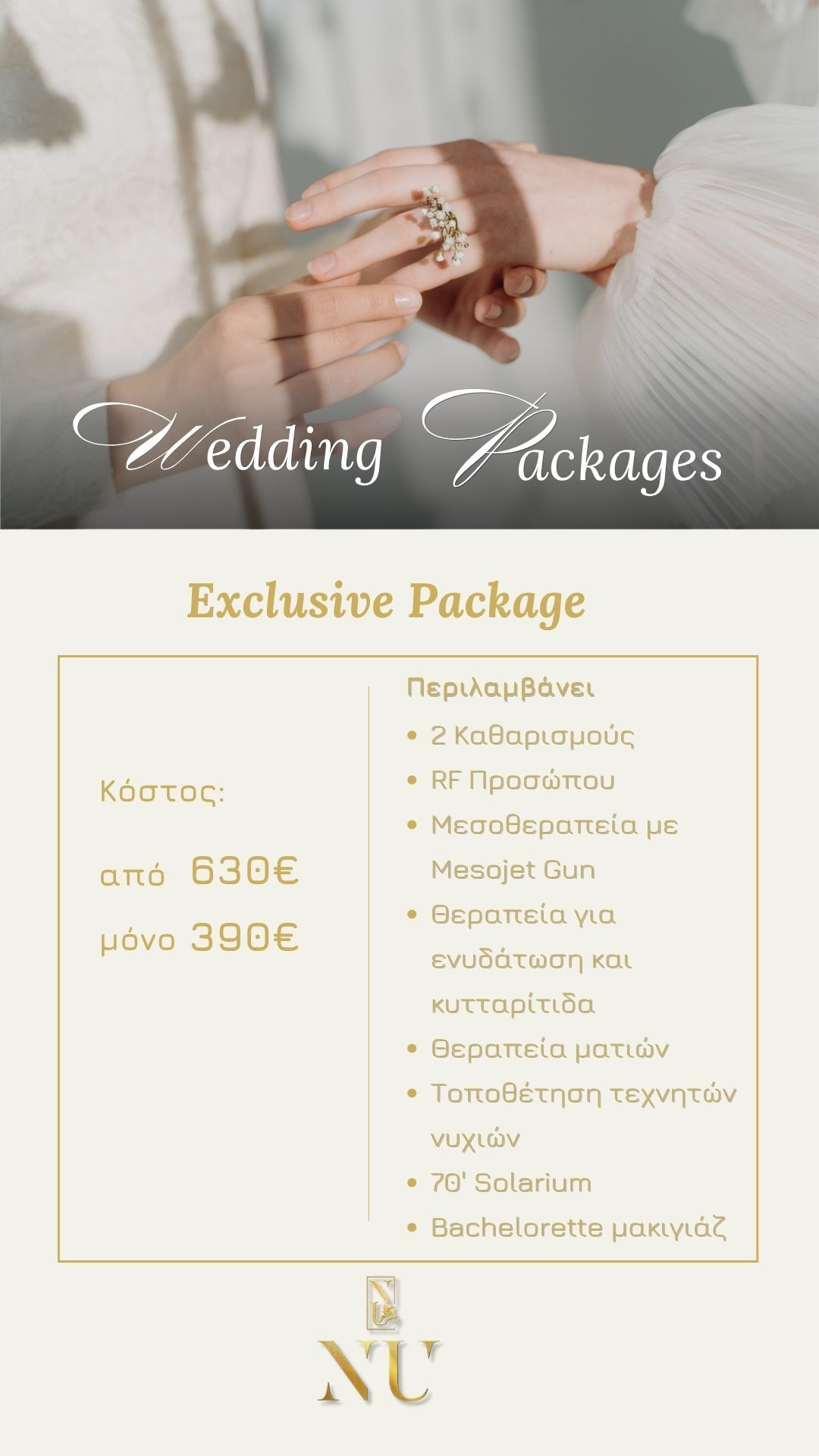 🔸 Exclusive – All-in glam! Το απόλυτο πακέτο για τη νύφη που θέλει το κάτι παραπάνω, με έξτρα υπηρεσίες, διάρκεια και προσωπική φροντίδα.